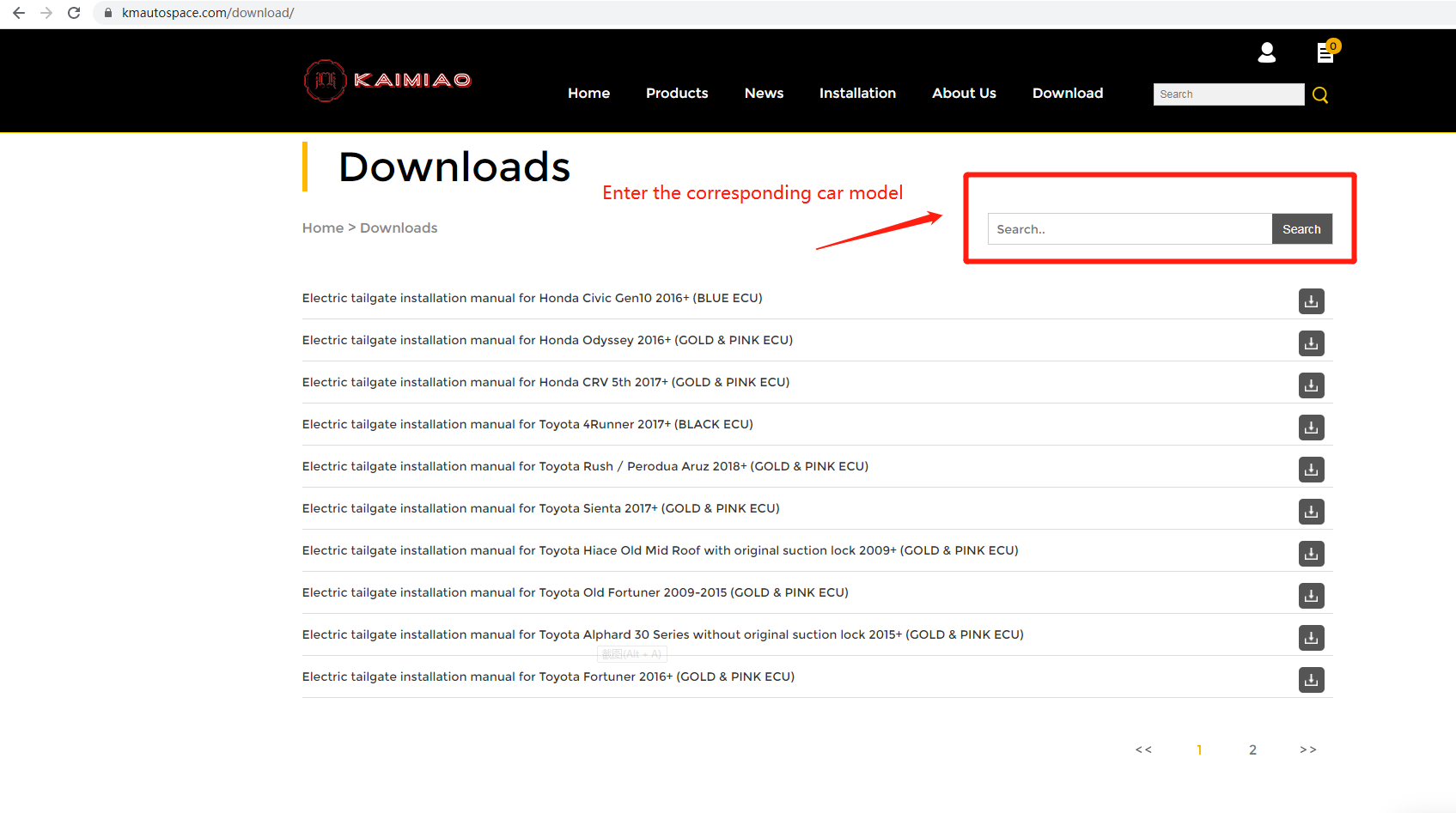 2. You can enter the corresponding car model. Choose the corresponding car model with the corressponding ECU color, download the insatllation manual.