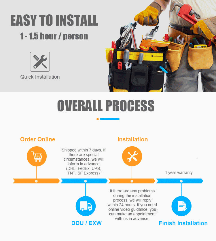 2. At the time of installation, if you have any questions or problems, please take pictures and videos, contact our sales staff directly or send an email to info@kaimiao-group.com. We arrange after-sales personnel to respond you within 24 hours.