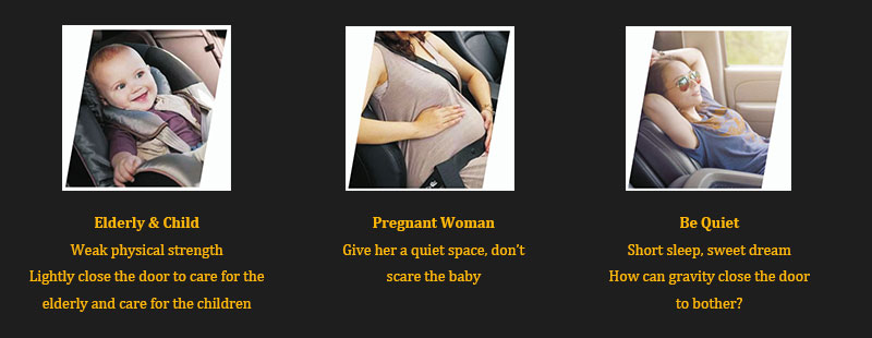 It is a safe and comfortable intelligent body control device for the car door lock system. When the door touches the body, the door will gently pull in automatically, and the door lock system will automatically tighten and half lock position to the full lock position. The car owner can easily close the door and no longer have to worry about the door not closing. It is safe and has a very intelligent, elegant and comfortable experience.